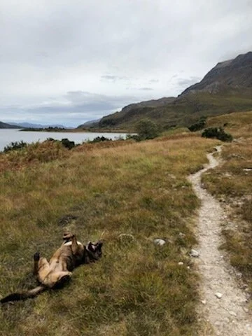 Brown dog has been living it up and enjoying everything but he’s very tired. He now goes into the tent as soon as I pitch it even with the doors open and waits for me to put his roll mat down so he can sleep on that. He waits for me at river crossings and comes back and walks behind me once he has found the route over himself! He’s taken to this trip. What are we going to do when we get back?